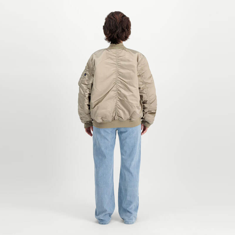 ALPHA INDUSTRIES MA-1 UV Bomber Jacket – Vintage Sand: The MA-1 UV Bomber & Flight Jacket by Alpha Industries is a stylish and durable must-have for any man’s wardrobe. Made from 100% nylon with a cozy acrylic pilling, it offers a relaxed fit and high-quality construction. Key features include the iconic RBF tag, magnetic closure pockets, and interior onion quilting for added warmth and texture. With its 200 gsm fabric, this jacket is perfect for transitional or colder weather. Versatile and timeless, it can be dressed up or down, making it a great choice for any occasion.