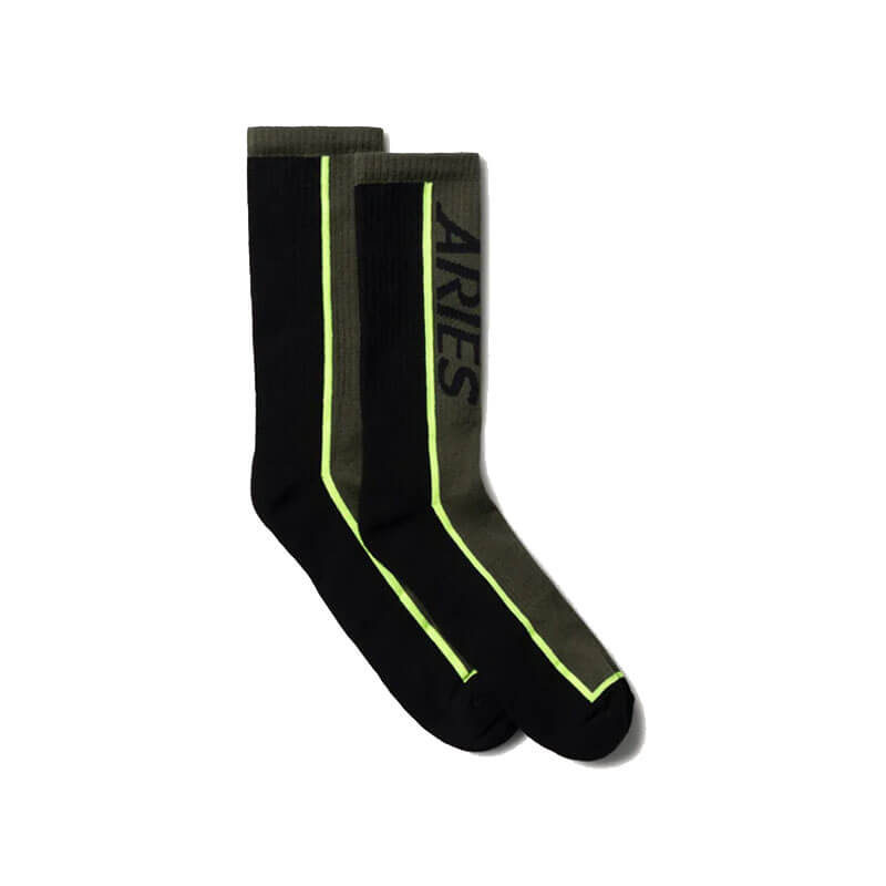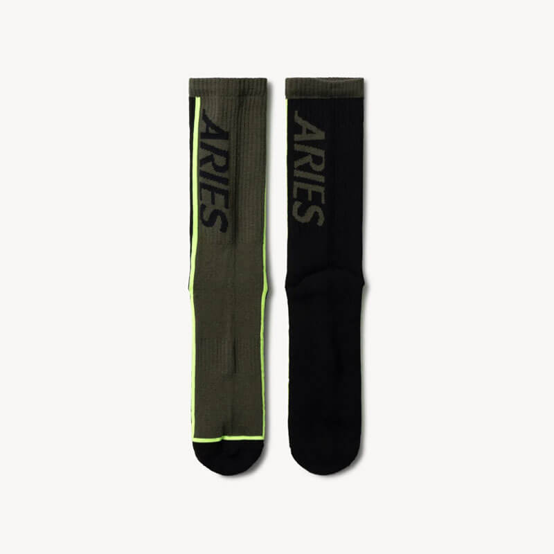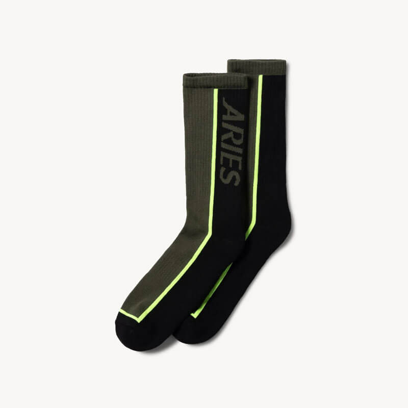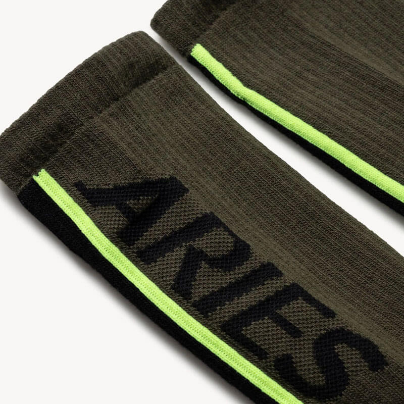 ARIES ARISE Credit Card Socks – Olive: Sports socks in a cotton/performance fabric blend with an Aries Credit Card jacquard design. Crafted in Italy, this ARIES ARISE Credit Card Socks – Olive are included in the last FW23 delivery and feature: