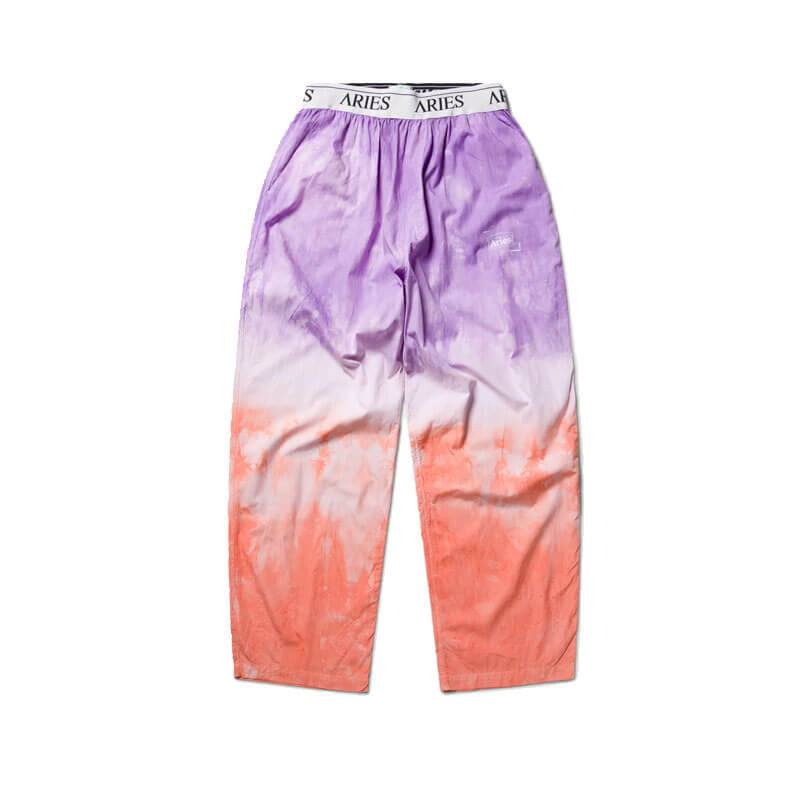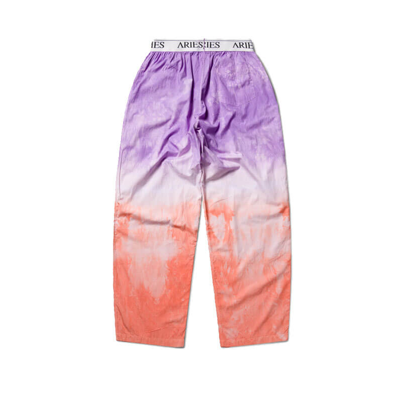 ARIES Dip Dye Poplin Pant – Multi: Poplin pyjama trousers with elasticated waistband and a screen-printed Temple logo. Featuring a dip dye treatment.