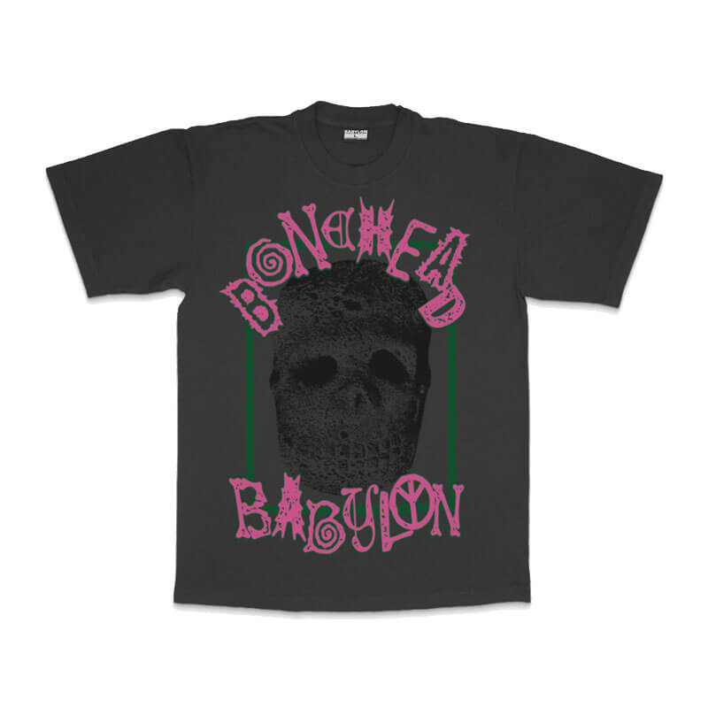 BABYLON LA Bonehead Tee – Black: Slightly oversized short-sleeve tee crafted  in midweight 6.5oz cotton jersey. An screen-printed Bonehead graphic on front complete the design.