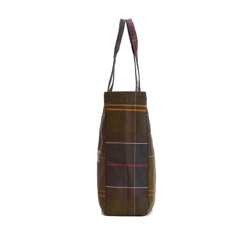 BARBOUR Telfield Tartan Tote Bag – Classic Tartan: Versatile cotton tartan tote bag featuring a branded stud closure and internal slip pocket