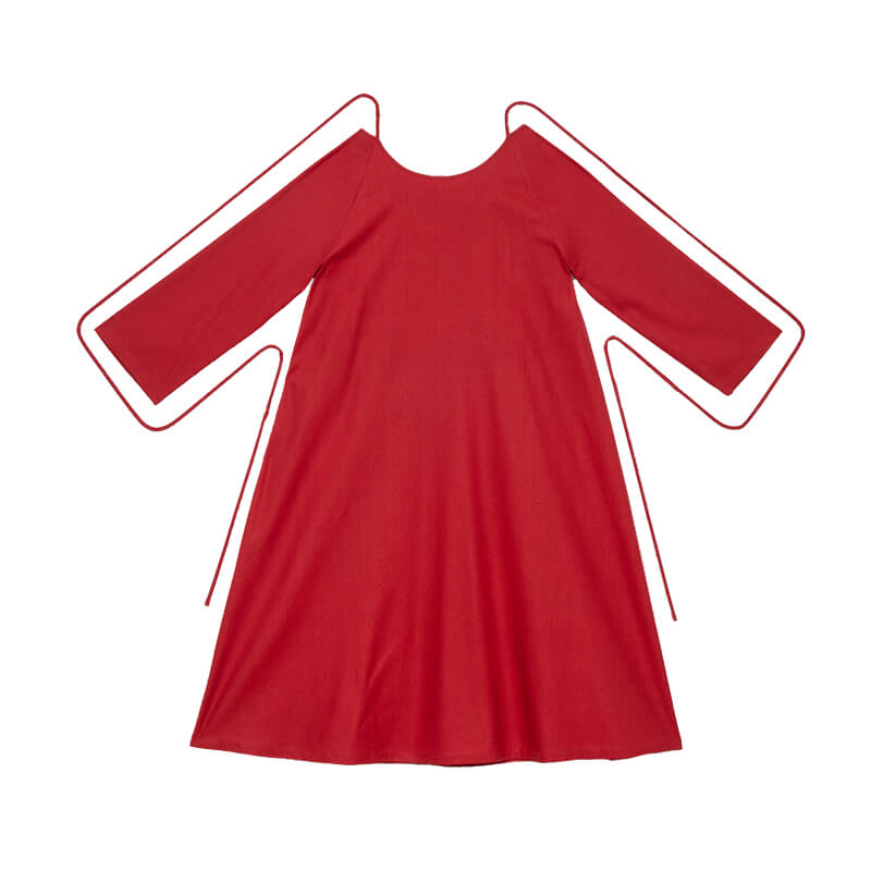 BASERANGE Otay LS Dress – Rubia Red: Wild silk long-sleeve dress crafted in wild silk. This Baserange dress features an open back and multiple ways of fastening.