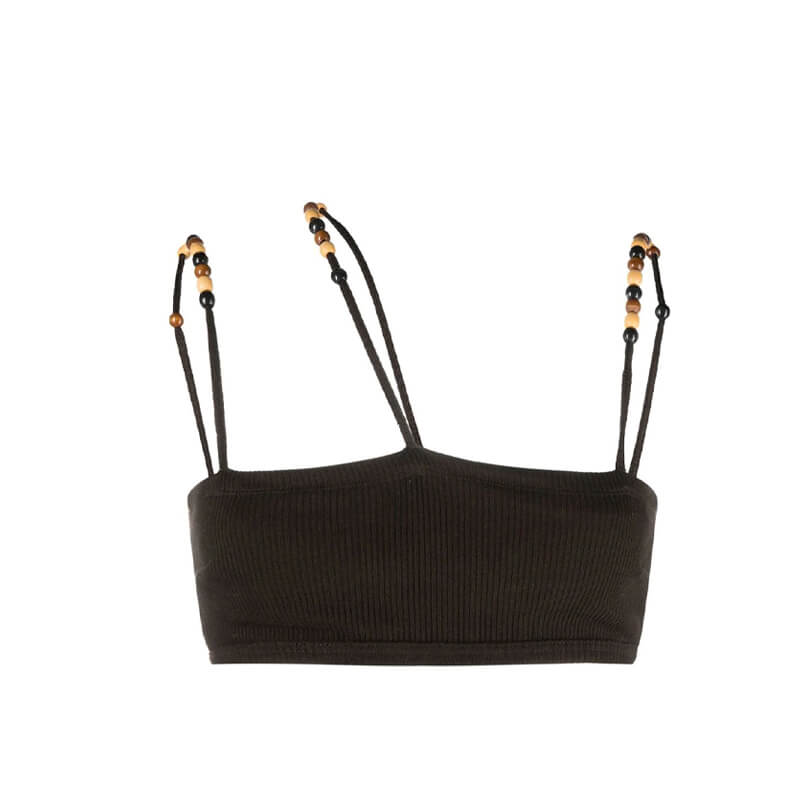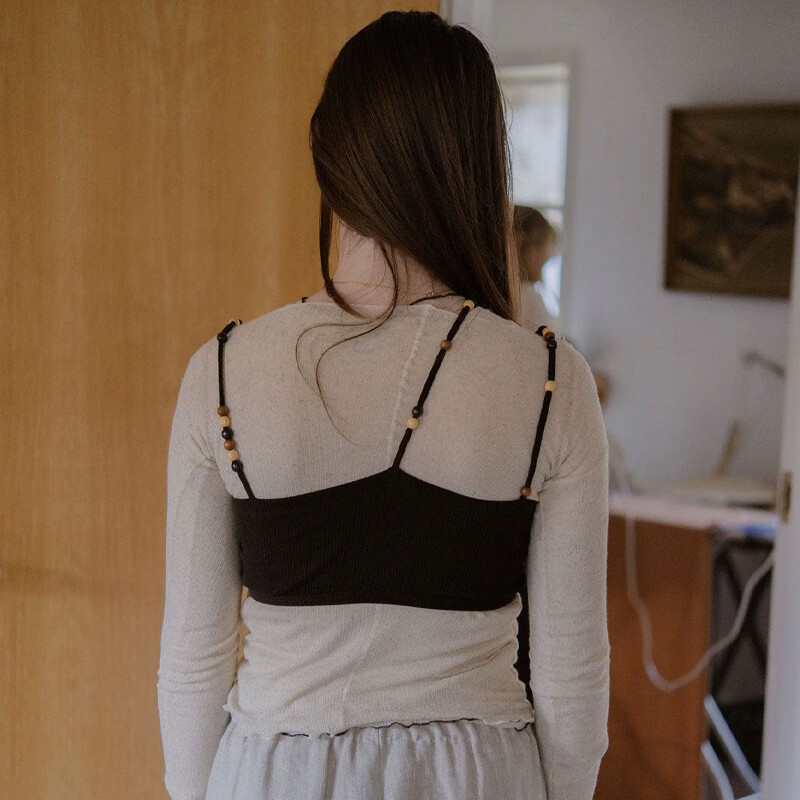 BASERANGE Tav Bra – Fovea: Recycle cotton rib bra with three thin straps with adjustable beads. Elevating your everyday underwear, this rib bra from Baserange is both comfy and supportive. Consciously crafted in Portugal from recycle cotton, this BASERANGE Tav Bra – Fovea is included in the last Spring-Summer23 collection and features: