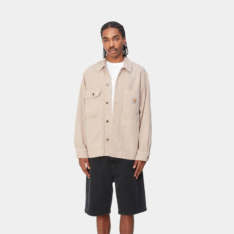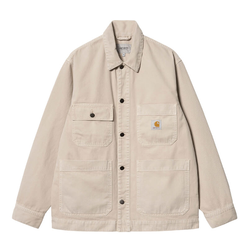 CARHARTT WIP Garrison Coat – Tonic Stone Dyed: Light coat constructed from heavyweight cotton twill that has been stone-dyed, resulting in a subtly washed out color configuration. Inspired by a classic chore coat silhouette, the item is also detailed with four utilitarian front pockets. A woven Square Label completes the design.