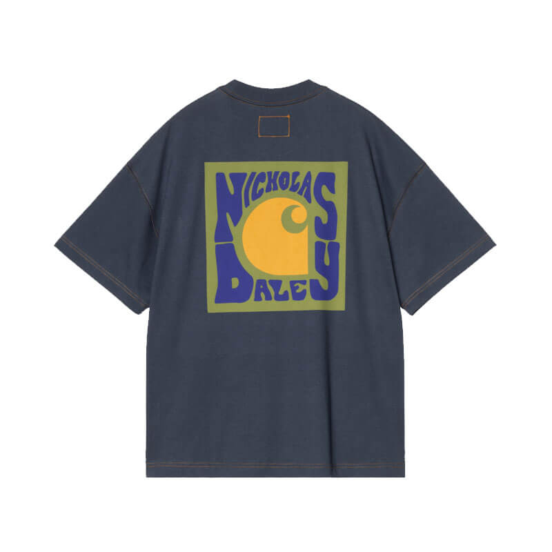 CARHARTT WIP x NICHOLAS DALEY Logo T-Shirt – Black Iris: For Fall/Winter 2025, Carhartt WIP has collaborated with designer Nicholas Daley to create a collection focused on Daley’s core values of community, craftsmanship and culture, while nodding to his own Jamaican and Scottish heritage. The Carhartt WIP x Nicholas Daley Logo T-Shirt is made in a boxy loose fit from midweight cotton jersey. A large graphic print appears at the back, inspired by 70s typography. The item is also detailed with contrast stitching throughout. A co-branded Square Label appears on the chest pocket.