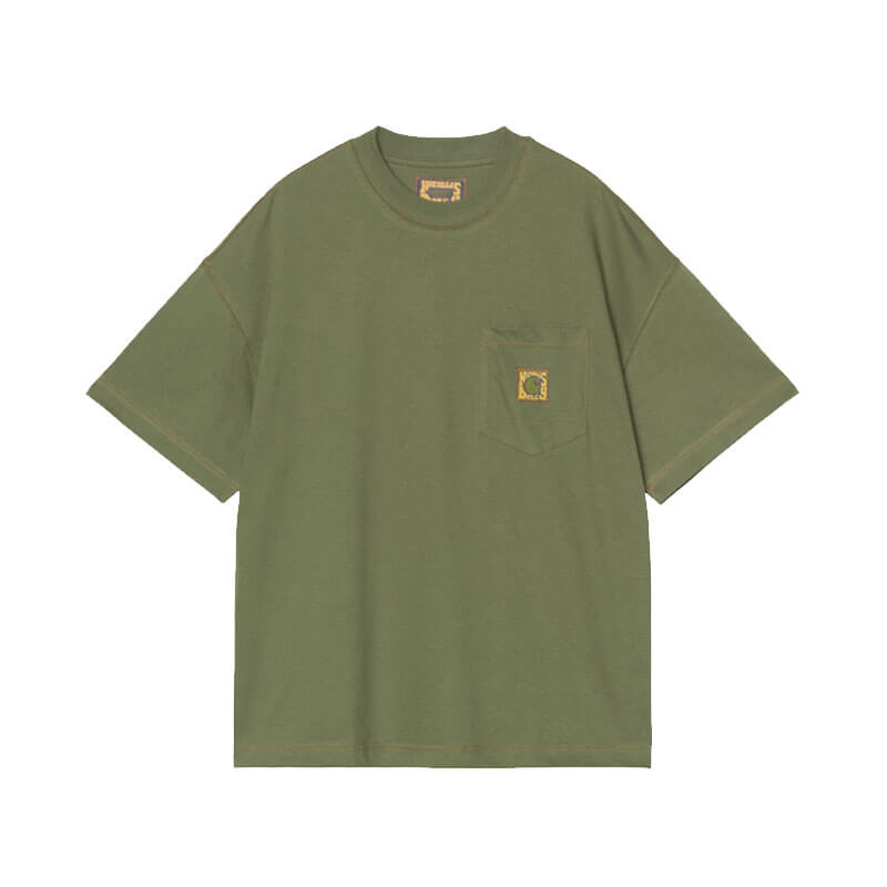 CARHARTT WIP x NICHOLAS DALEY Logo T-Shirt – Cypress: For Fall/Winter 2025, Carhartt WIP has collaborated with designer Nicholas Daley to create a collection focused on Daley’s core values of community, craftsmanship and culture, while nodding to his own Jamaican and Scottish heritage. The Carhartt WIP x Nicholas Daley Logo T-Shirt is made in a boxy loose fit from midweight cotton jersey. A large graphic print appears at the back, inspired by 70s typography. The item is also detailed with contrast stitching throughout. A co-branded Square Label appears on the chest pocket.
