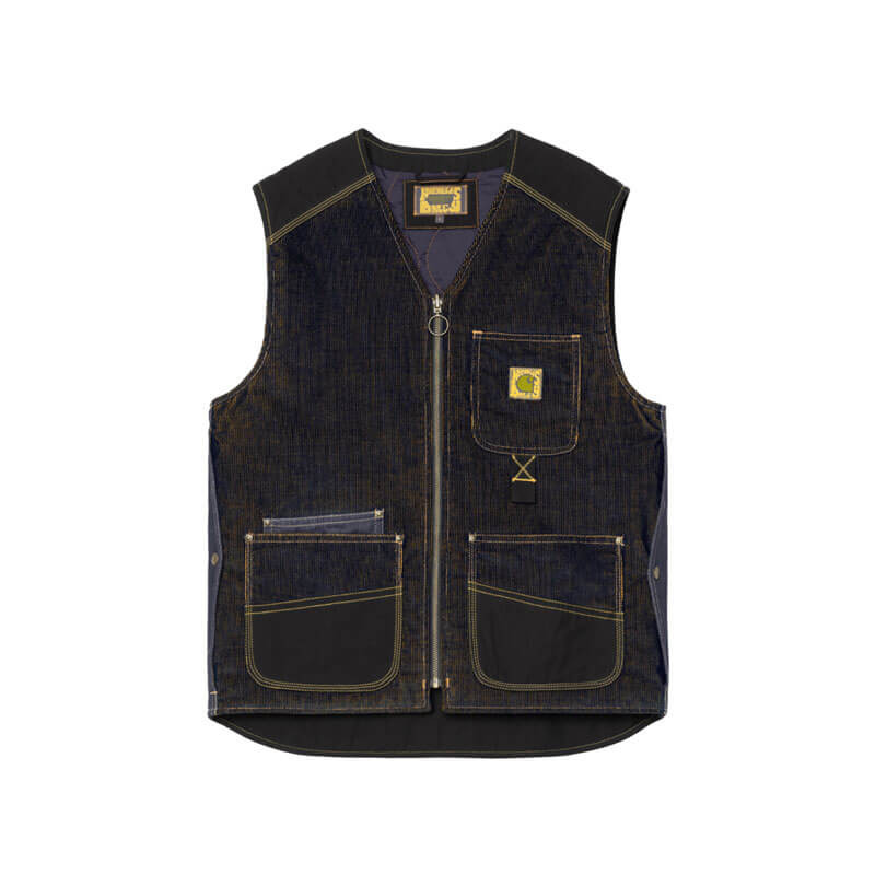 Included in the last Fall delivery, this CARHARTT WIP x NICHOLAS DALEY Vest – Dark Navy / Mustard features