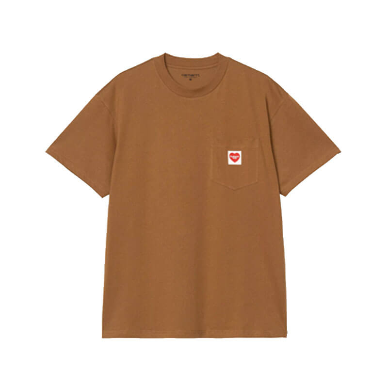 CARHARTT WIP Pocket Heart Tee – Hamilton Brown: Short sleeve tee made from lightweight cotton in a loose fit. A woven Heart Label appears on the chest pocket.