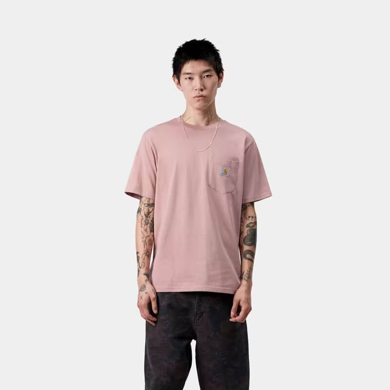 CARHARTT WIP Pocket T-Shirt – Glasey Pink: This short sleeve Pocket T-Shirt is constructed from cotton jersey and features a chest pocket finished with a classic woven Carhartt WIP label.