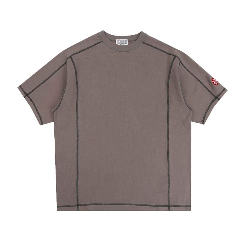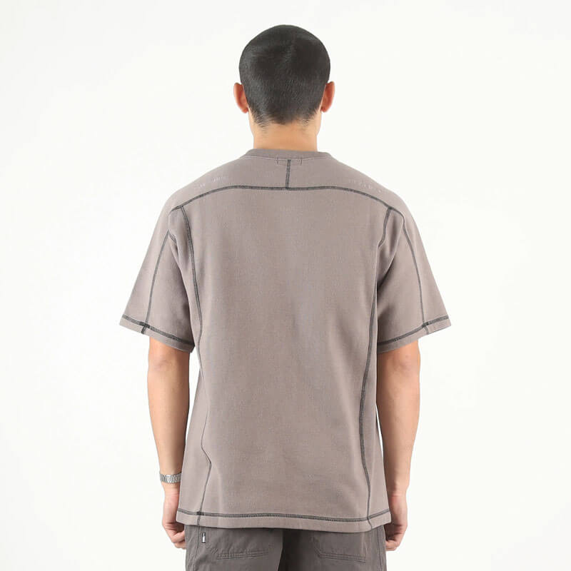 CAV EMPT Crew Neck DBL Knit SS – Charcoal: Short sleeve sweatshirt crafted in cotton jersey with contrast color stitching details. Pre-washed to avoid shrink with a bio process, this garment is finished with C.E patch logo on sleeve.