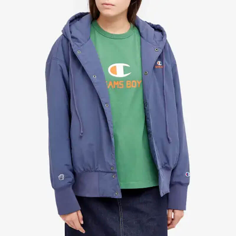 BEAMS BOY for CHAMPION Hooded Jacket – Blue: Carefully researching the extraordinary amount of archives, Beams Boy selected a few specific models for their collaboration with Champion. Timeless and practical, this hooded jacket is designed with the outdoors in mind. Cut from a water repellent nylon, an array of pockets add a touch of functionality. On the chest, the two brand’s come together to create a collaborative logo patch. Included in the last FW23 delivery, this BEAMS BOY for CHAMPION Hooded Jacket – Blue features: