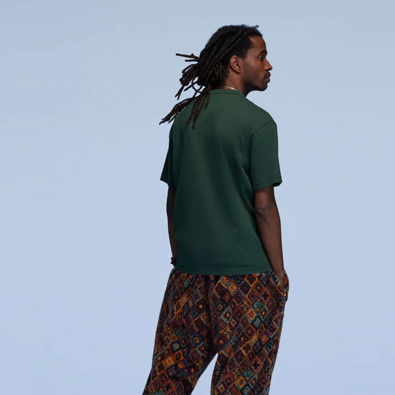 CHAMPION MADE IN USA Crewneck Tee – Black: This is a short-sleeve T-shirt from the “T1011” series, a symbol of heavyweight T-shirts that have been loved and refined since the 1930s. It features the unique dry feel of USA cotton and becomes more appealing with each wear. The shirt is crafted in a round body construction with no side seams. The binder neck is a nod to the authentic American athletic wear style of Champion. The product is garment-washed to provide a comfortable, worn-in feel right from the start.