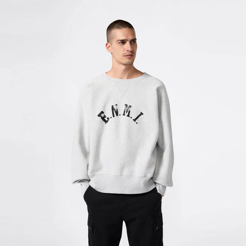 CHAMPION Sunset Ranch 1st Patent Crewneck – Oxford Grey: Inspired by the Eastern New Mexico Military Institute, this crewneck sweatshirt is part of the Index & Archives – Sunset collection, celebrating the authenticity of American college style. Made from iconic Reverse Weave—Champion’s patented 1930s construction designed to prevent vertical shrinkage—it combines a relaxed fit with heritage details, offering both tradition and functionality.