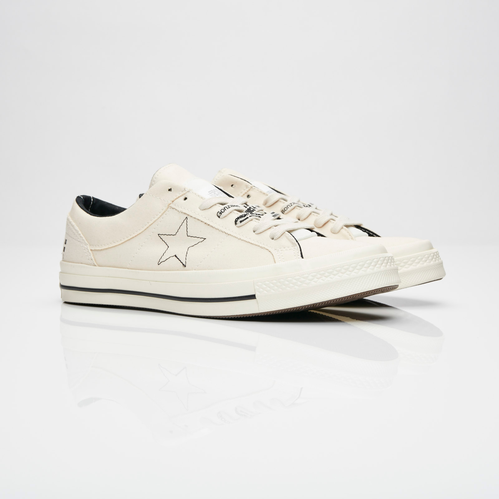 From interning at SSUR to founding his own brand Midnight Studios wasn’t a long route for Shane Gonzales, the 24(?) year old LA-based designer digs deep in his archive to recreate the Converse One Star. Inspired by classic skate brands like Baker and Punk bands, mixing classic design elements with collage-clipping, his Midnight Studios imprint turns the Converse One Star inside out, showing-off elements that are usually hidden. The canvas upper is held in a tonal egret colorway with stitched cut-out One Star logo and branded laces.