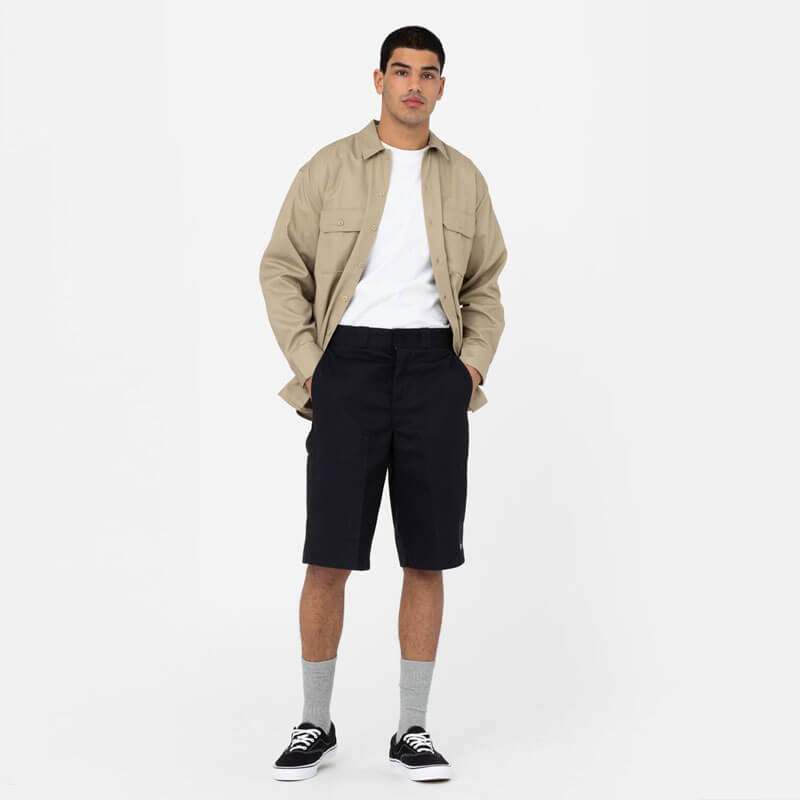 DICKIES 13 Inch MultiPocket Short – Black: Work-inspired shorts that sit below the knee and higher on the waist for a cool, casual look. They also come with a multi-tool pocket on the leg to keep essentials safe and secure. Crafted from Dickies’ signature poly-cotton twill fabric, these work shorts are ultra-comfy and built to last. This DICKIES 13 Inch MultiPocket Short – Black is included in Spring-Summer 23 delivery and features: