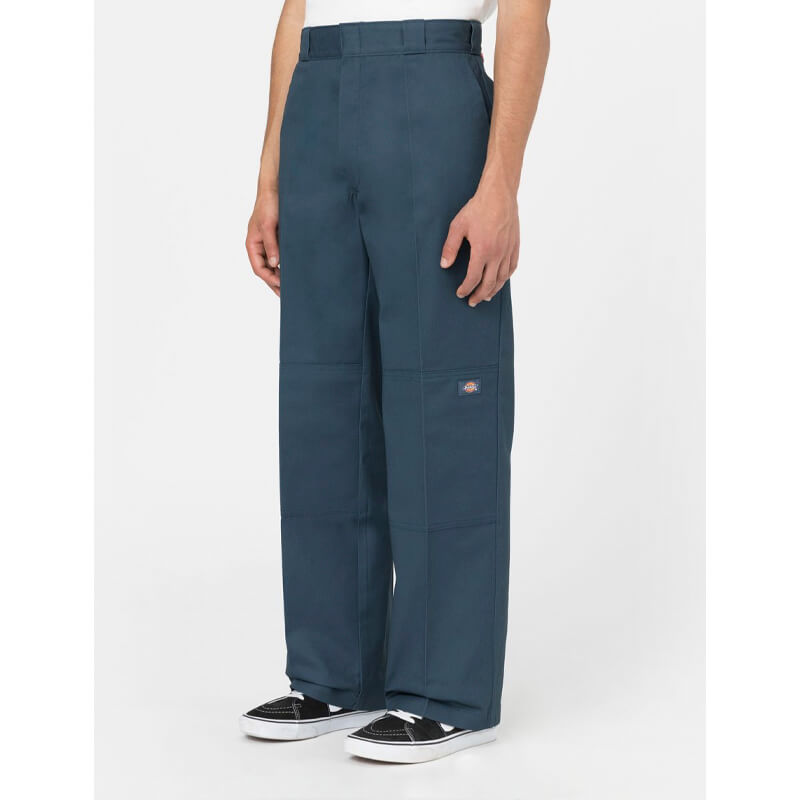 DICKIES Double Knee Pants – Air Force Blue: Classic work-inspired Double Knee Trousers in an iconic relaxed, easy-to-wear fit. Crafted from the brand’s signature hardwearing poly-cotton blend – now made with consciously sourced recycled fibers. They also feature a multi-pocket on the thigh that’s big enough for all your essentials and reinforced knees for complete comfort and signed off with the classic horseshoe label above the back pocket.