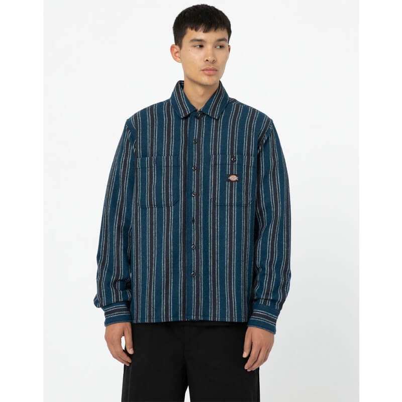 DICKIES Hope Stripe Shirt – Western Stripe Dark: Crafted from a yarn-dyed brushed wool mix, the men’s Hope Stripe Shirt blends comfort and warmth with easy-going Dickies style. Its relaxed fit, straight hem and twin front pockets give it an authentic look that’s built to last through the seasons. Included in the last FW23 delivery, this DICKIES Hope Stripe Shirt – Western Stripe Dark features:
