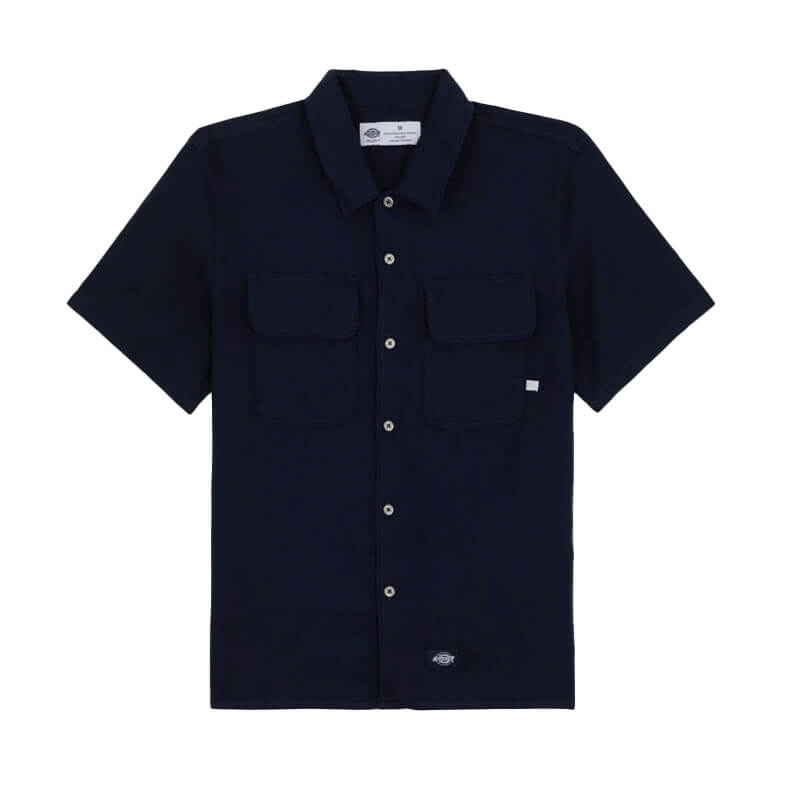 DICKIES Linen Work Shirt – Navy: Crafted for comfort, function and durability, our Linen Short Sleeve Work Shirt is a timeless workwear style created in collaboration with renowned guest designer Nin Truong. With its relaxed fit, straight hem and classic collar, this short sleeve shirt is smart enough for work but stylish enough for off-duty adventures. Plain weave linen makes this shirt cool in warm weather, giving you the confidence to step out all summer long.