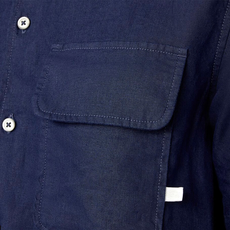Included in the brand Premium Collection, delivered for Spring-Summer24, this DICKIES Linen Work Shirt – Navy features: