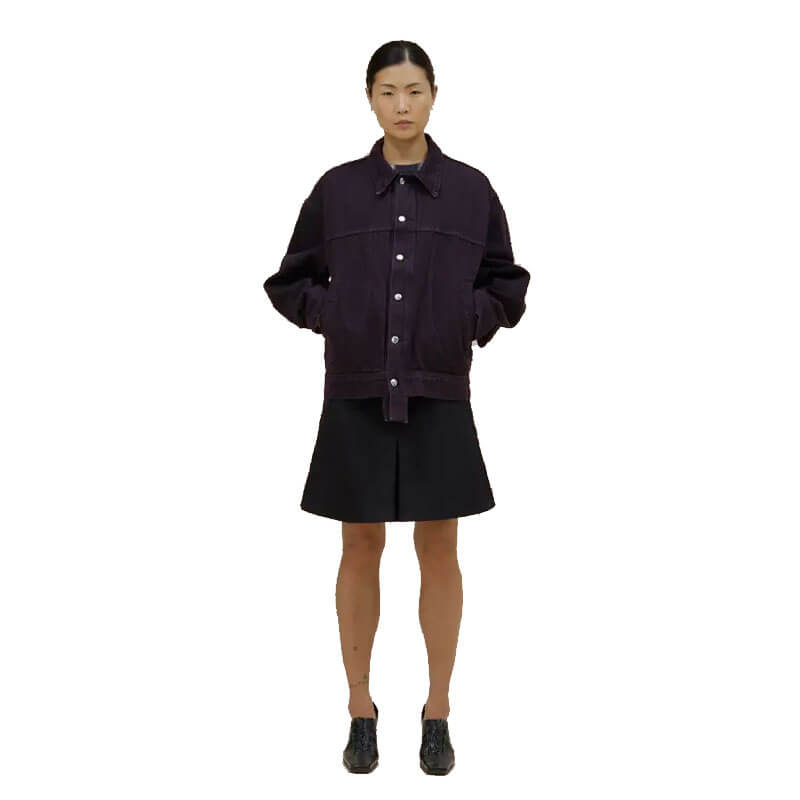 Included in the first delivery of American brand at THEROOM, this ECKHAUS LATTA EL Jacket Redux – Amethyst features: