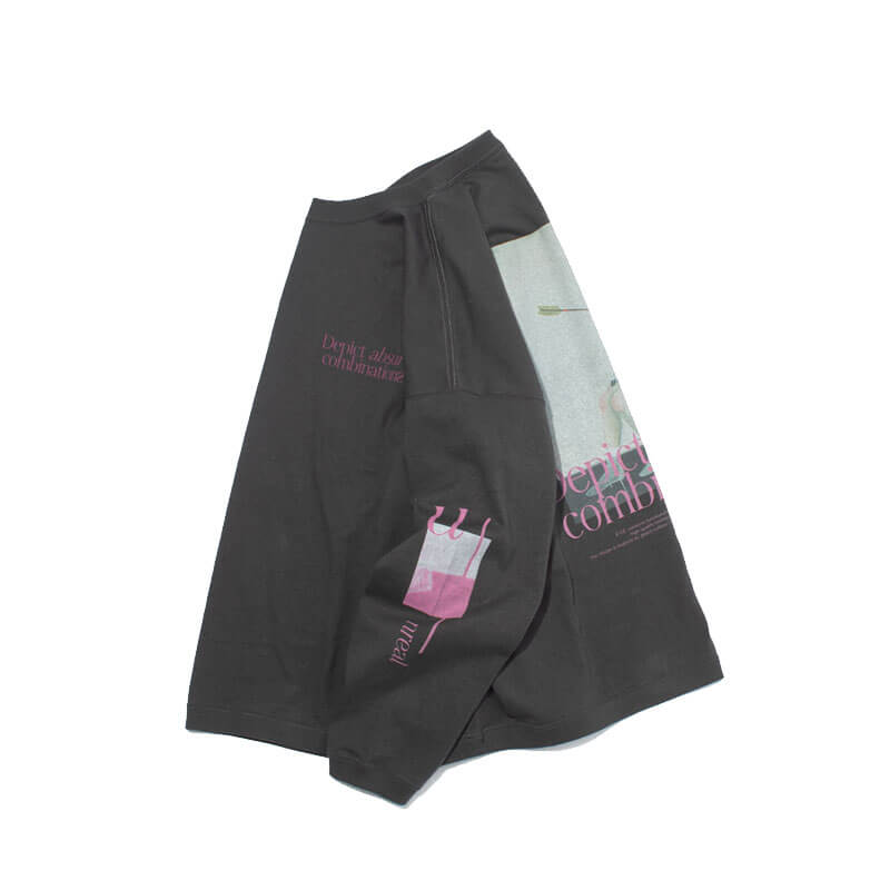 Included in the last Spring25 delivery of the Japanese brand, this F/CE. Hidden Identity by M.Enomoto LS Tee – Charcoal features: