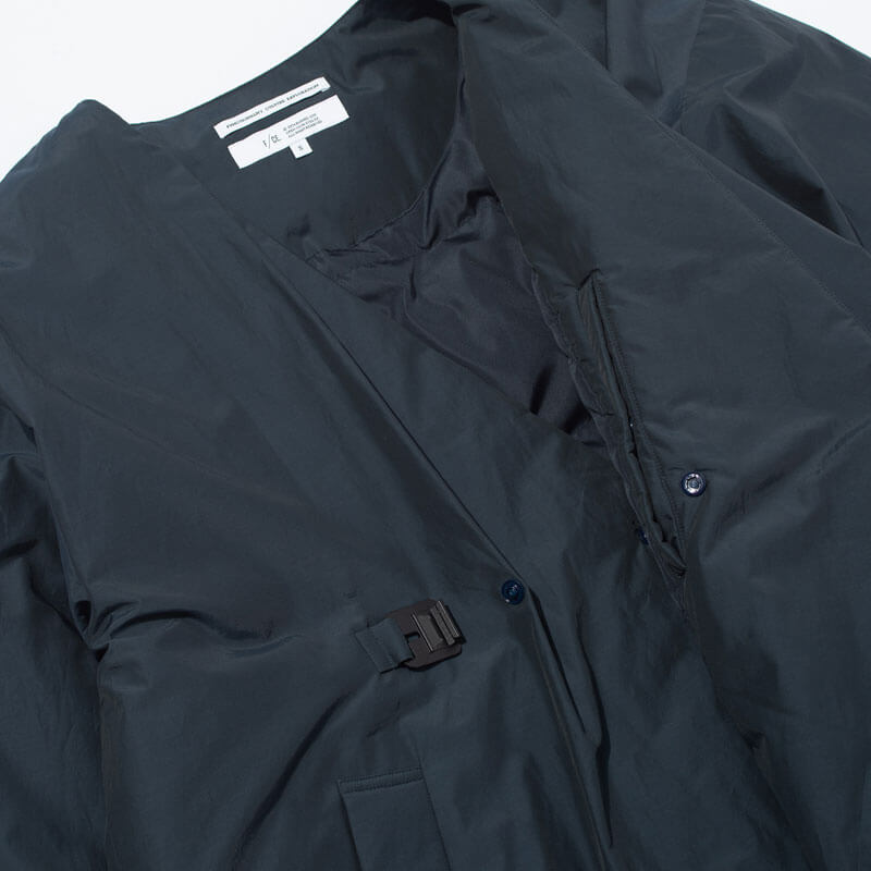 Included in the last Fall25 delivery of the Japanese brand, this F/CE. Recycled Down 2way Stand Coat – Navy features: