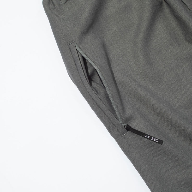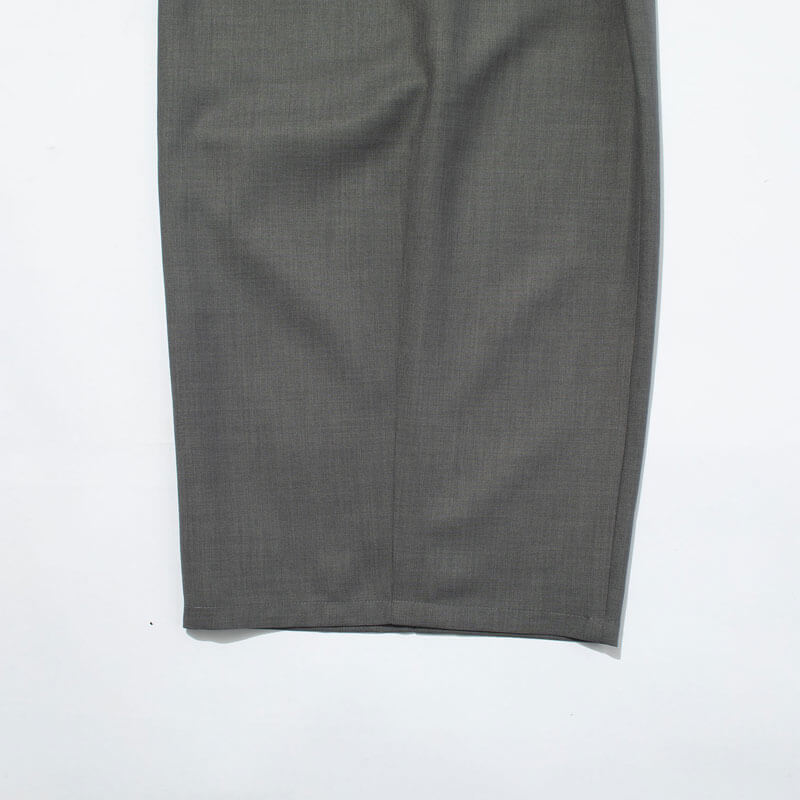 F/CE. Twistwool Wide Trousers – Gray: High-waisted wide pants made from a tweed-like material created by twisting 170 denier polyester to mimic the texture of carded wool. These pants are lightweight, comfortable to wear, and have a soft feel, offering a polished look. The design has been updated with fine details such as pockets, evolving the wide pants from the previous version.