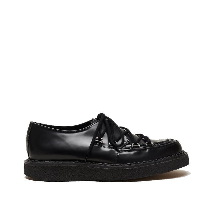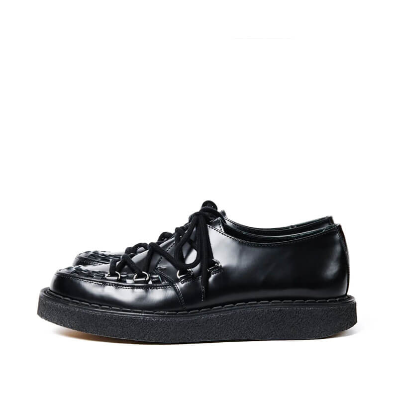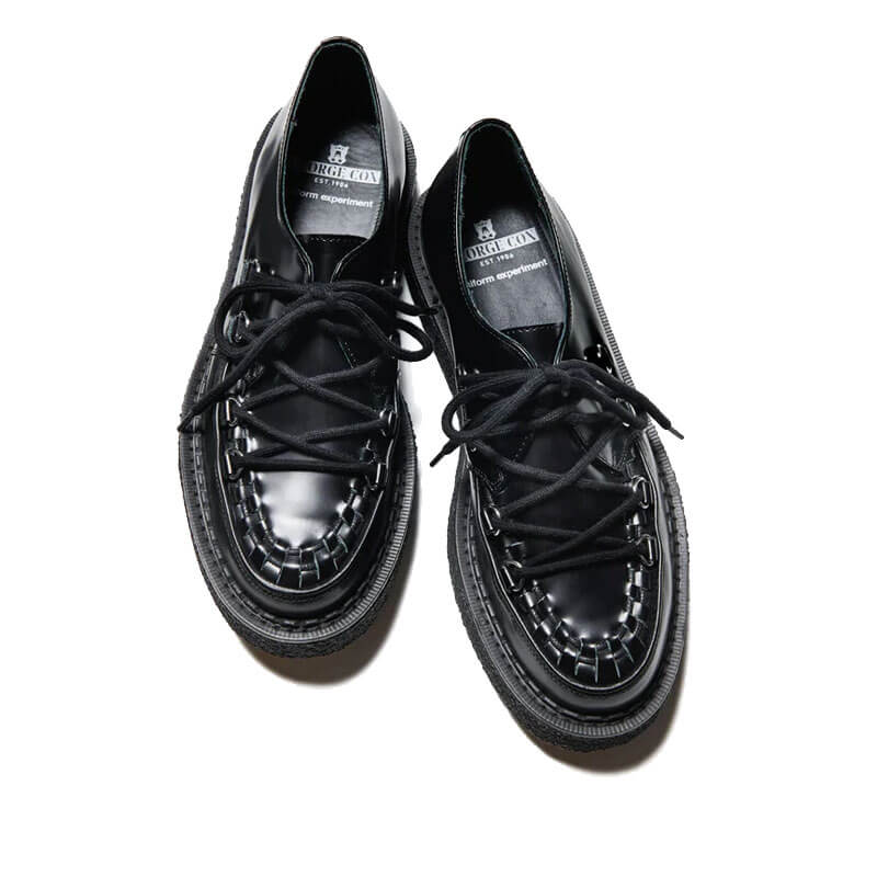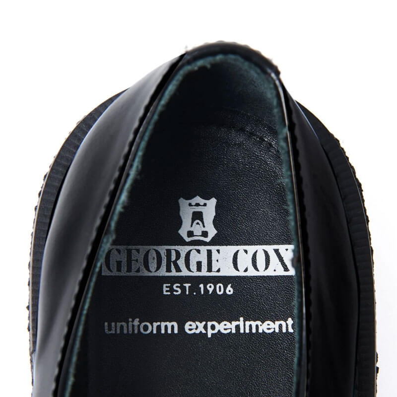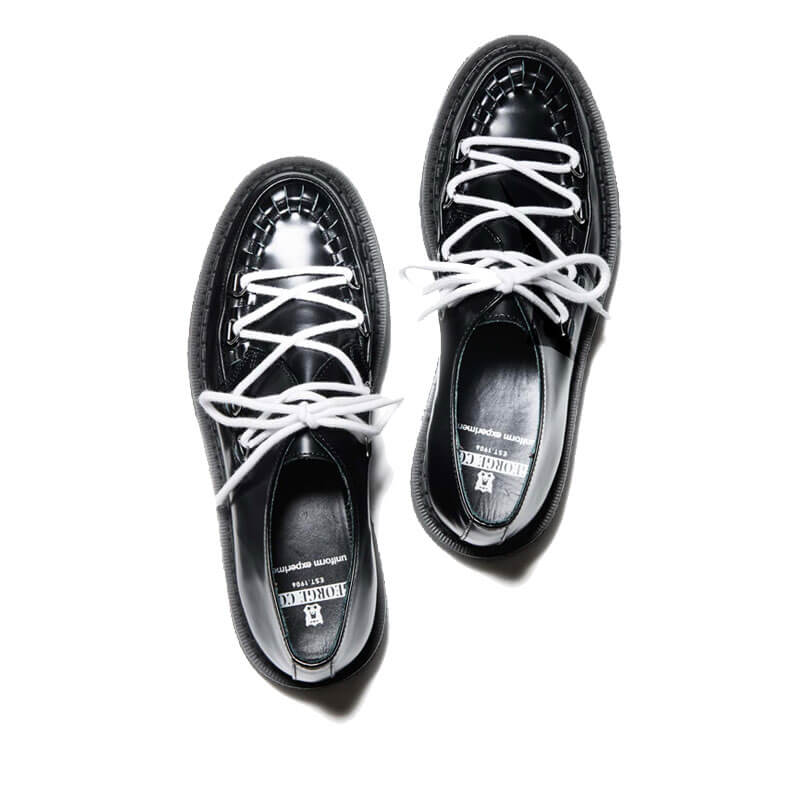 GEORGE COX x UNIFORM EXPERIMENT Tie-Down Hatton – Black: The British brand had come to work with SOPH on their uniform experiment line this season because of their shared philosophy of non-conformity, combined with uniform experiment’s specific incorporation of historic cultural design for which they are a perfect fit. Using one of our styles as a foundation for uniform experiment to adapt and innovate from created a strong collaboration proposition from the outset.
