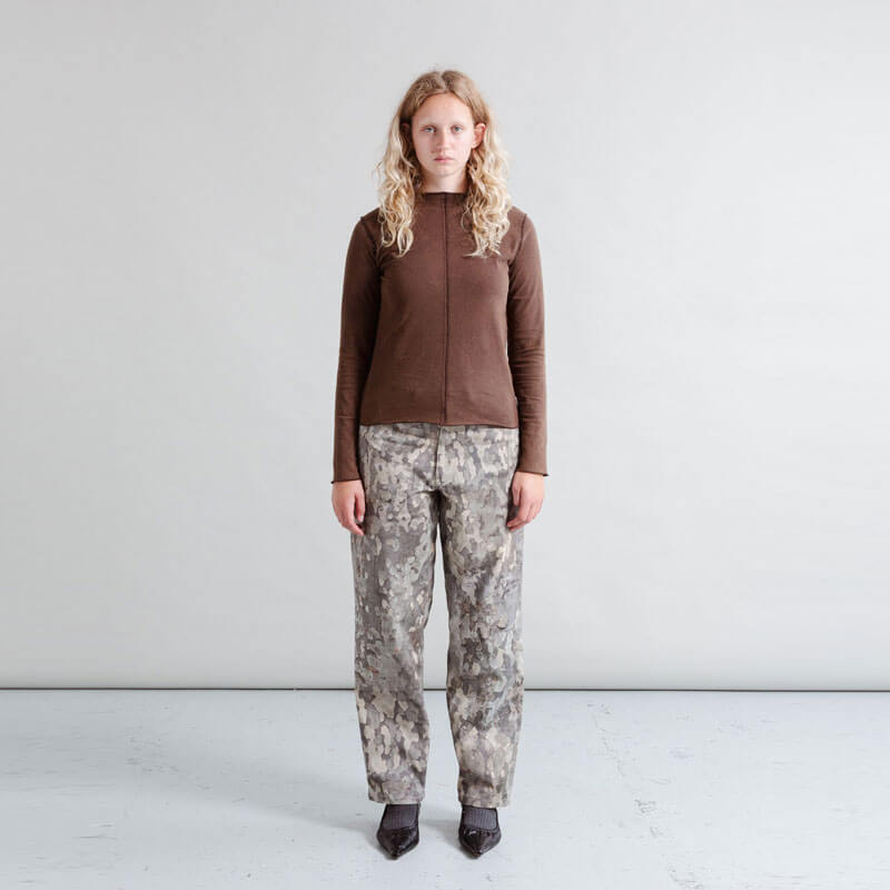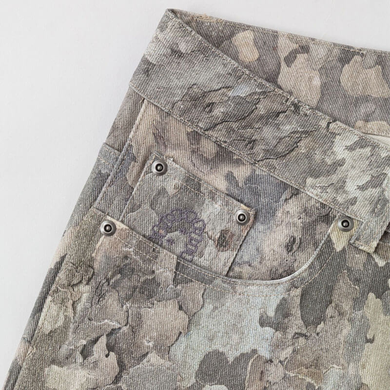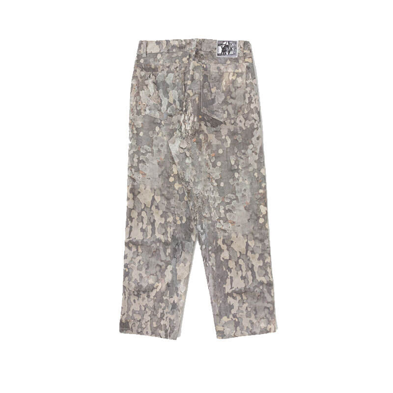 HERESY Bark Jeans – Print: 5 pocket jeans in ecru heavyweight denim, featuring ‘Bark’ print. The jeans have YKK jeans button, rivets, zip and branded jacron paper patch on the back.