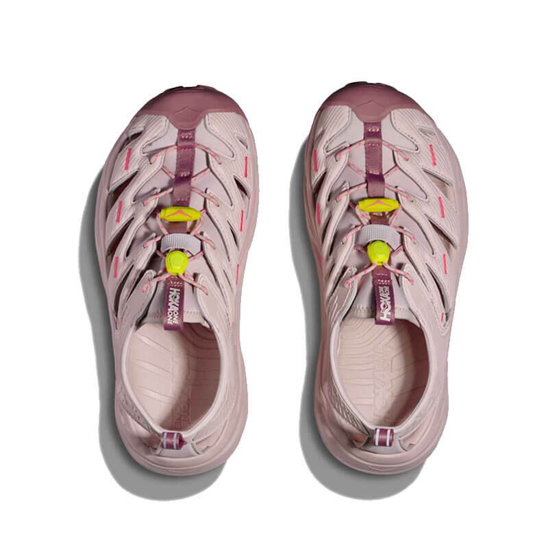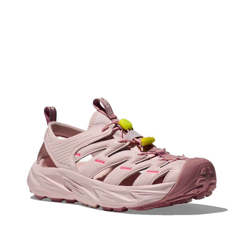 HOKA Hopara – Rose Tea / Neon Rose: A true outdoor explorer, the Hopara easily navigates through any terrain — wet or dry. Designed through the HOKA lens, this shoe will blow other mountain sandals out of the water. The Hopara has a synthetic upper with strategic cutouts for drainage while still providing a secure lockdown. It includes a neoprene collar for flexibility and comfort plus a quick-lace system. Providing a responsive yet cushioned feel thanks to a rubberised EVA midsole, the Hopara also features a rubberised toe cap for protection and a sticky rubber outsole for traction in a variety of conditions. Add in 4mm multidirectional lugs for even more grip and the Hopara is your key to adventure.