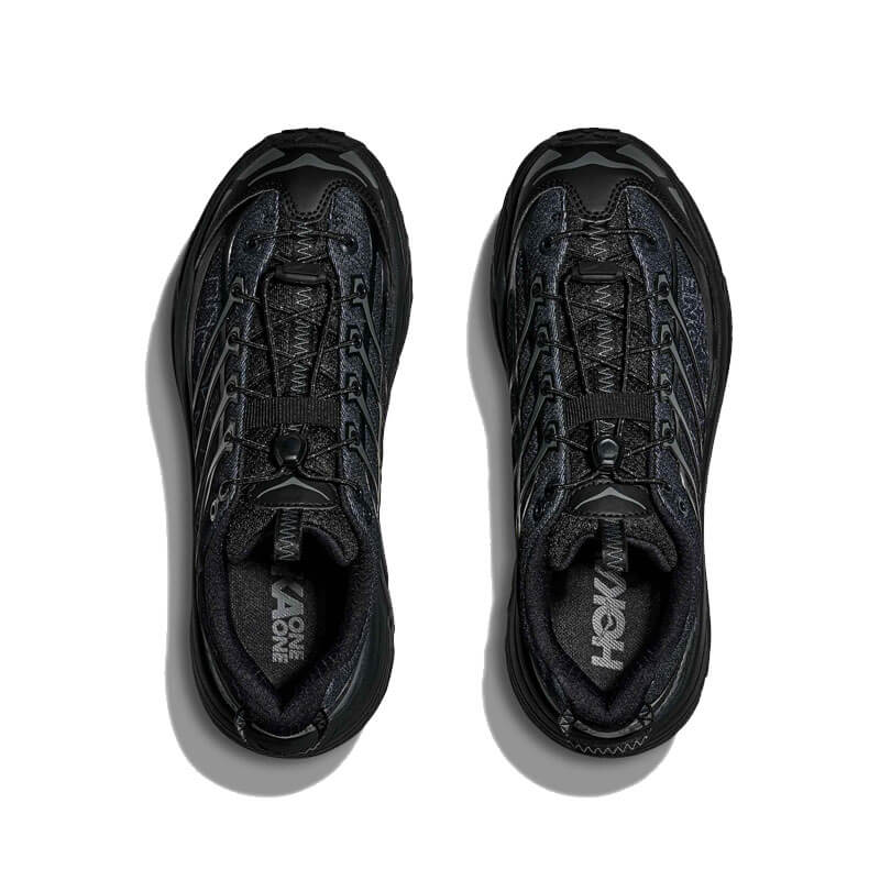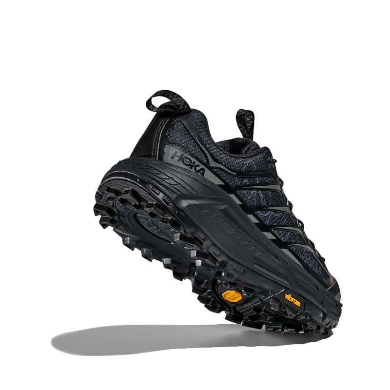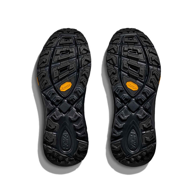 Delivered for the first time for Fall25, this HOKA Mafate Three2 Wordmark – Black / Outer Orbit features: