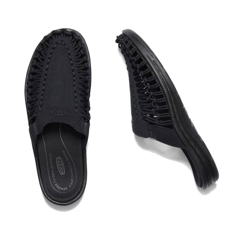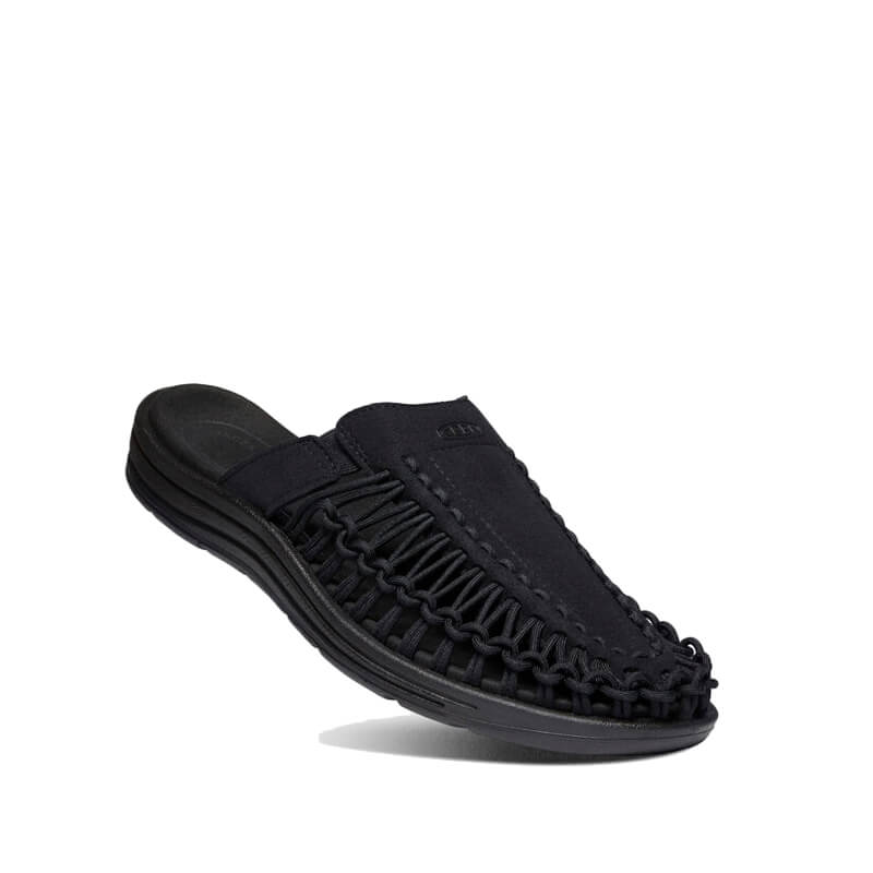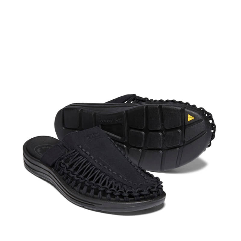 KEEN UNEEK II Slide Sandals – Black: The Keen’s original two-cord sandal in a slip-on version. Adapts to your foot for unending comfort with a breathable knit upper made from recycled P.E.T. plastic bottles. This KEEN UNEEK II Slide Sandals – Black features: