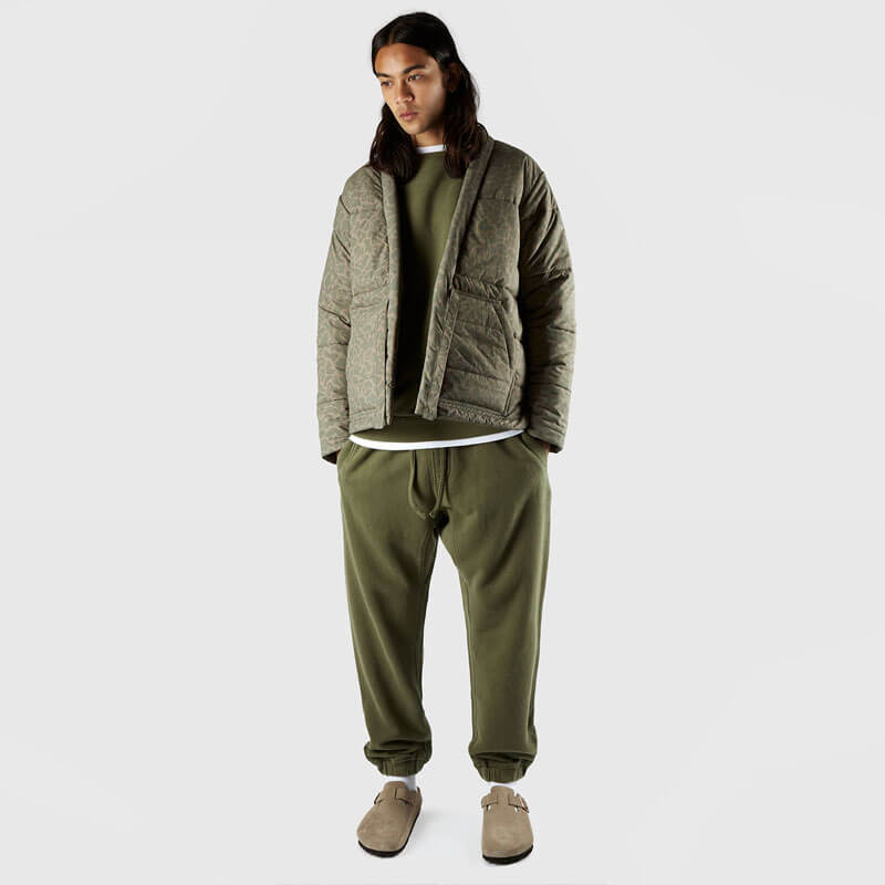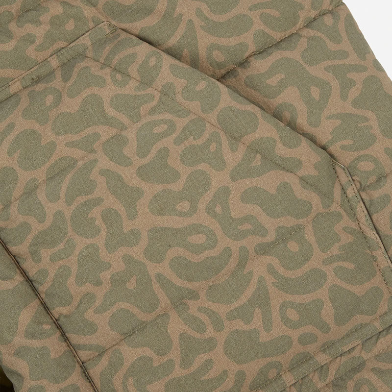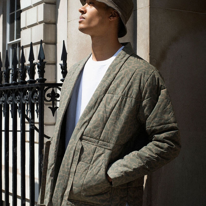 MAHARISHI Camo Tech Padded Kimono – Woodland: Technical kimono constructed from a Japanese made, water-repellent nylon. This durable ripstop nylon features an all over Mamushi camo print while the padded design provides additional warmth in cooler climates.