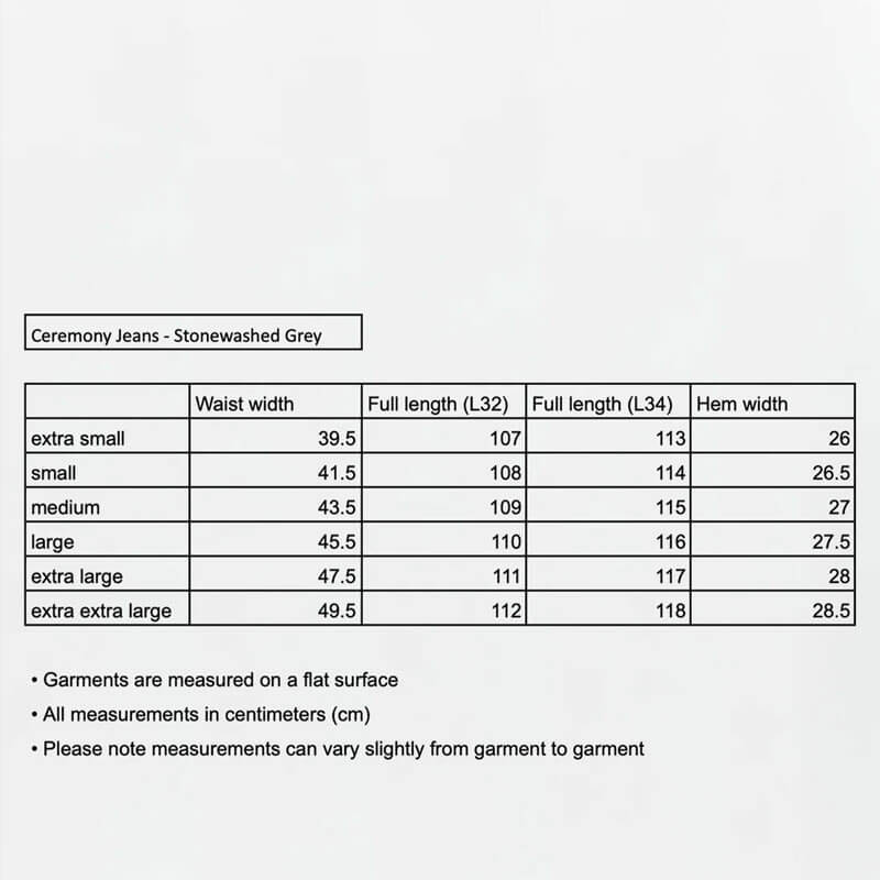 Included in the last Fall25 collection, the MFPEN Ceremony Jeans – Stone Washed Grey are equipped with:
