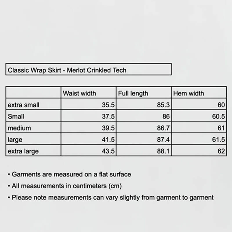 Included in the last Fall25 collection, the MFPEN Classic Wrap Skirt – Merlot Crinkled Tech are equipped with: