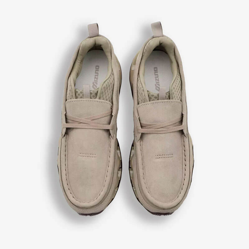 MIZUNO Wave Prophecy Moc – Taupe: The Wave Prophecy Moc sneakers are the hybrid mash-up that we didn’t know we needed. Up top, they take the form of a traditional leather moccasin, mixed up with a sporty mesh sockliner and complete with a white lace detail. Underfoot, the iconically zany Mizuno Wave Plate midsole juxtaposes the upper and delivers the most cushioned ride about.