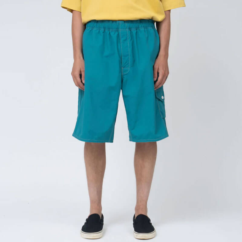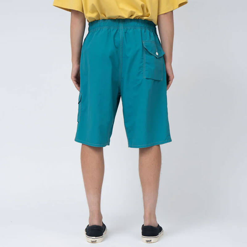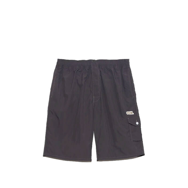 NANAMICA Deck Shorts – Charcoal Grey: Wide-cut deck shorts made with Supplex nylon, a lightweight and supple texture similar to cotton, and finished with a non-fluorine water repellent treatment. Designed based on board shorts from the 1990s, and featuring a small flat pocket on side.