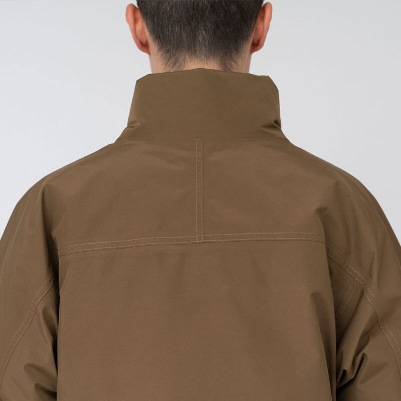 NANAMICA GORE-TEX Short Down Jacket – Khaki Green: Stand collar down jacket in a short length. Crafted in a waterproof and breathable 2L Polyester GORE-TEX Fabric and full lined in polyester ripstop. Featuring full zipped closure with plaket and dot buttons and yoke sleeves like on mountain jackets enables easy up and down movement of the arms. Inner collar and cuffs with ribs that prevent the entry of cold air while its filling with high function KODENSHI®︎ down, which reflects back far infrared rays emitted by the body, will maintain you warmth. Two big frontal pockets and two inner pockets with fastener complete the design.