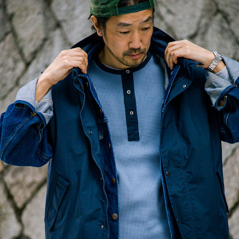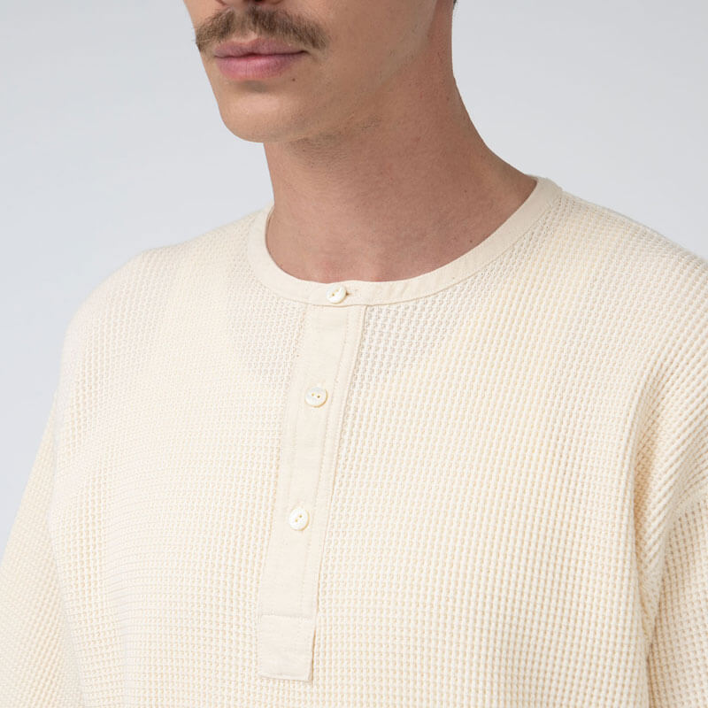 This NANAMICA Henry Neck Thermal Sweat Tee – Blue Gray is included in the last Spring25 delivery and equipped with: