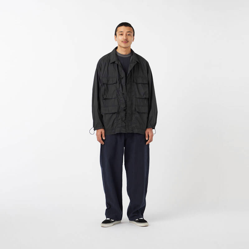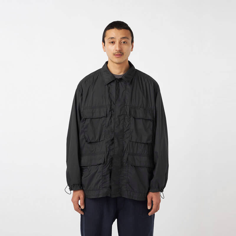 NANAMICA Light Weight Field Jacket – Black: Field jacket made with 2.5-layer 12D nylon ripstop, featuring excellent waterproofness while being extremely lightweight.