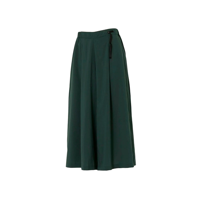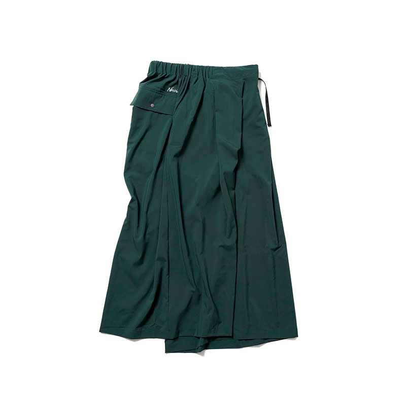 NANGA Excursion Wide Pant W – Green: These wide flare pants feature deep tucks on the front and a silhouette that widens towards the hem. The waist is adjustable with a belt adjuster, making it easy to put on and take off. You can wear the top either tucked in or out to create a beautiful balance. The hips are equipped with a flap pocket for smartphones and small items, adding practicality.