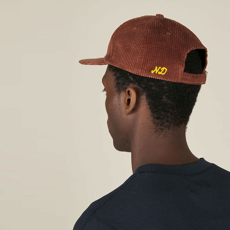 NICHOLAS DALEY Reggae Klub Cap – Brown: 5-Panel cap made in made in 100% brown cotton corduroy with embroidered ‘Reggae Man’ and ‘The Reggae Klub’ chainstitch at front.
