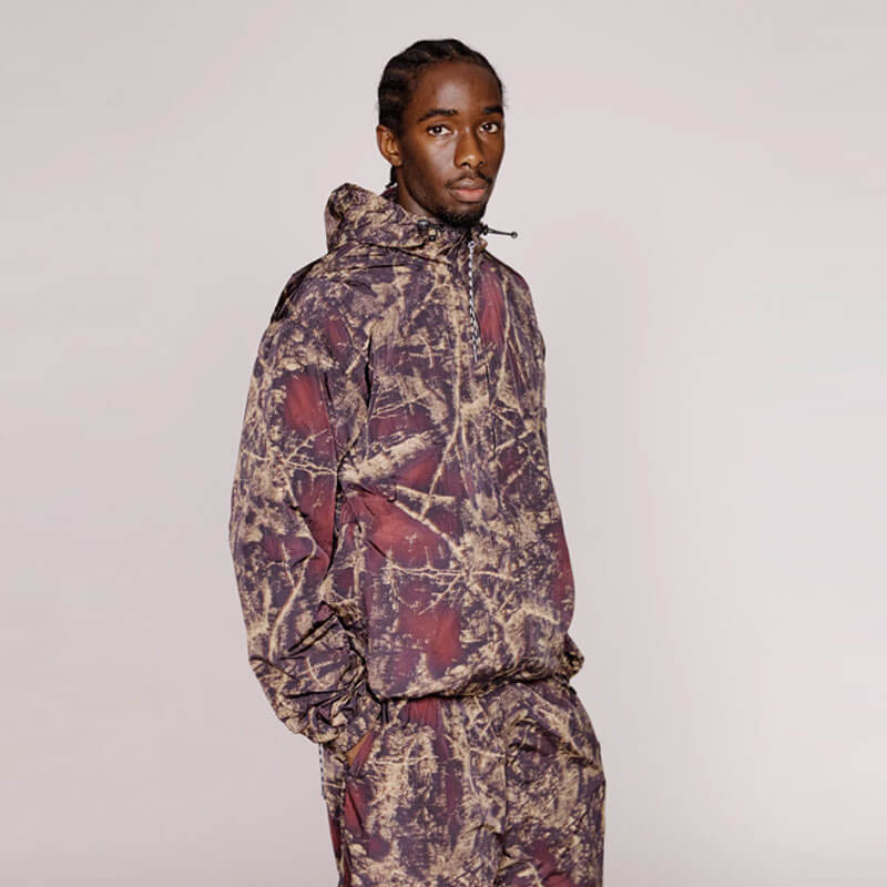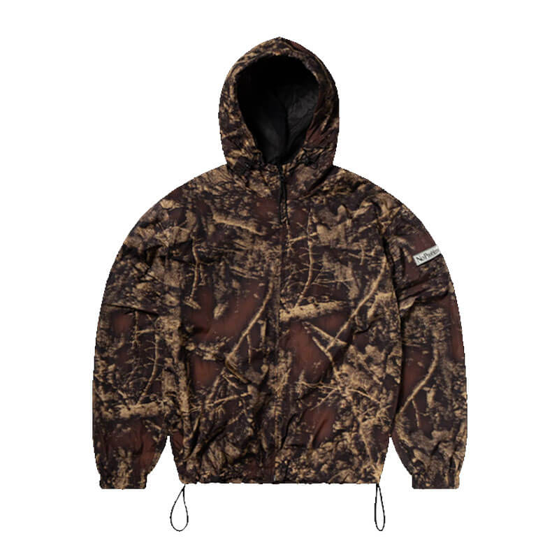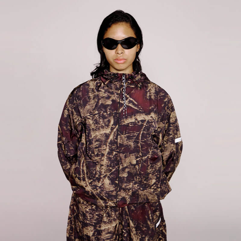Included in the last Fall25 delivery, this NO PROBLEMO Forest Glitch Nylon Jacket – Camo features:
