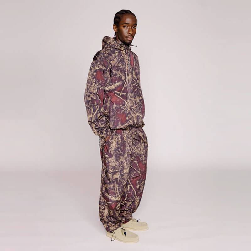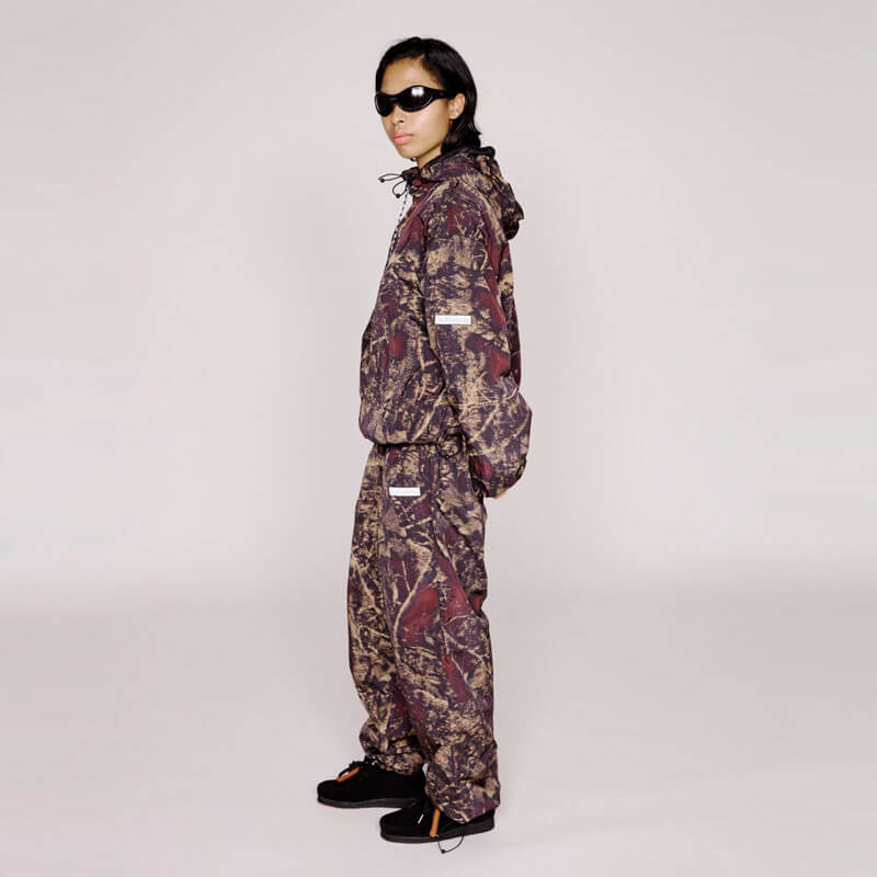 Included in the last Fall25 delivery, this NO PROBLEMO Forest Glitch Nylon Pant – Camo features: