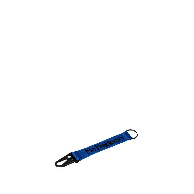 NO PROBLEMO Carabiner Keychain – Blue: Keychain featuring ‘No Problemo’ embroidered logo.