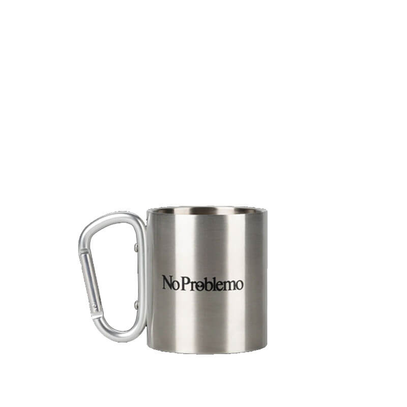 Included in the last Fall24 delivery, this NO PROBLEMO No Problemo Carabiner Mug – Silver features: