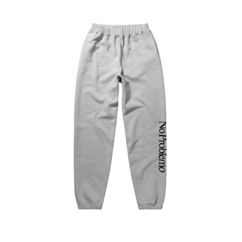 NO PROBLEMO No Problemo Sweatpant – Grey Marl: Unisex sweatpant made brushed-back jersey fleece. Featuring No Problemo screen-printed graphic logo on leg.