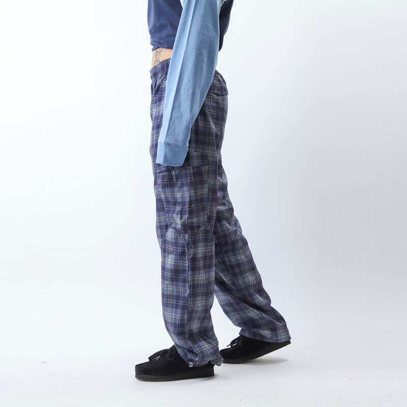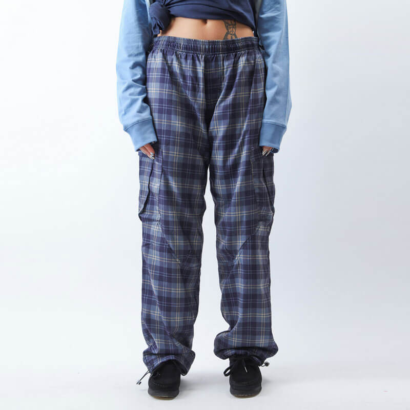 NOON GOONS Interlude Cinch Pant – Slate: Plaid cargo pants popped with ample roomy pockets and drawcords at the elastic waist and hems for the perfect fit. This NOON GOONS Interlude Cinch Pant – Slate is part of the last FW23 collection and equipped with: