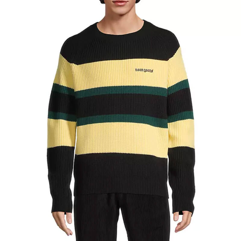 NOON GOONS Phat Budde Sweater – Black: Full fashion stripe knit thick gauge sweater. Featuring embroidery logo on left chest, this NOON GOONS Phat Budde Sweater – Black is part of the last FW23 collection and equipped with: