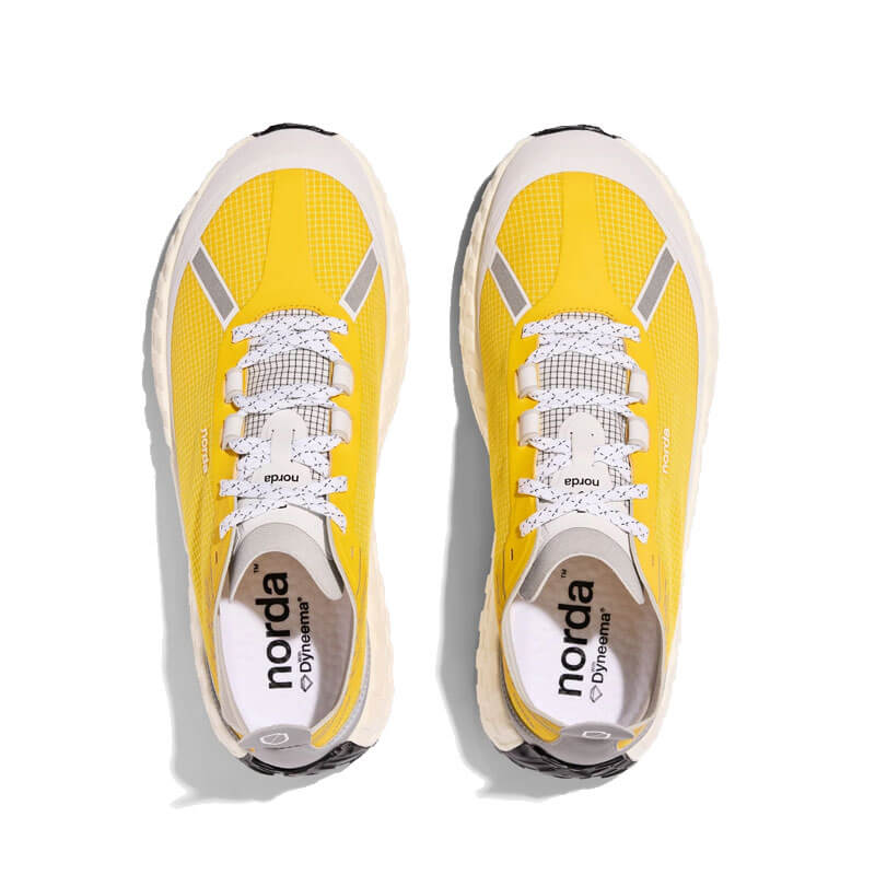 NORDA The 001 – Parhelion: One giant leap for trail-kind. Built with the world’s first seamless Bio-Dyneema® upper and exclusive Vibram® midsole and soleplate, the 001 is engineered with the lightest and strongest materials for mindless comfort on mindful pursuits. Designed to prove that true sustainability is found in durability.